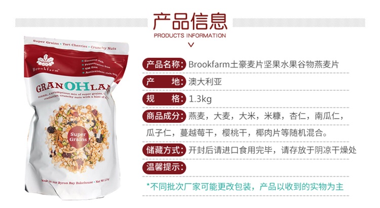 • 商品名称:原味土豪麦片 Brookfarm Granohlaah Super Grains 1.3kg